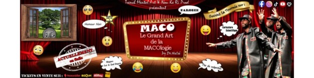 Après une année riche en émotions ! Et le Début de la Tournée de MACO : Le Grand Art de la MACOlogie by Dr.Helsé en France. Vous avez pu découvrir le MACO-Show avec 3 représentations exclusives à Paris, au Théatre Montmartre-Galabru dans le 18ème. Pour cette année 2024, nous vous raison encore des surprises et surtout une NOUVELLE DATE pour le MACO-Show le JEUDI 14 MARS 2024 à 20h00 à ANGERS (49) Tickets déjà disponible en prévente sur vos plateformes billetreduc, francebillet, FNAC & Bizouk et en magasins : https://www.billetreduc.com/335897/evt.htm https://www.fnacspectacles.com/artist/dr-helse/ https://www.francebillet.com/billet-sortie/acheter/humoriste-s-maco-le-grand-art-de-la-macologie-man60695-lt.htm https://www.bizouk.com/events/details/maco-le-grand-art-de-la-macologie-by-drh/74480