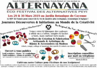 A l’occasion du Alternayana, qui se tiendra les 29 & 30 Mars 2019 au Jardin Botanique de Cayenne, le RDV de l’année où concevoir de nouvelles façons plus écologiques, économiques et logiques de vivre et consommer, l’Association Trench Mental Art en partenariat avec la marque Trench Mental Art, ainsi que Trench Mental Art Edisyon mettent en place: