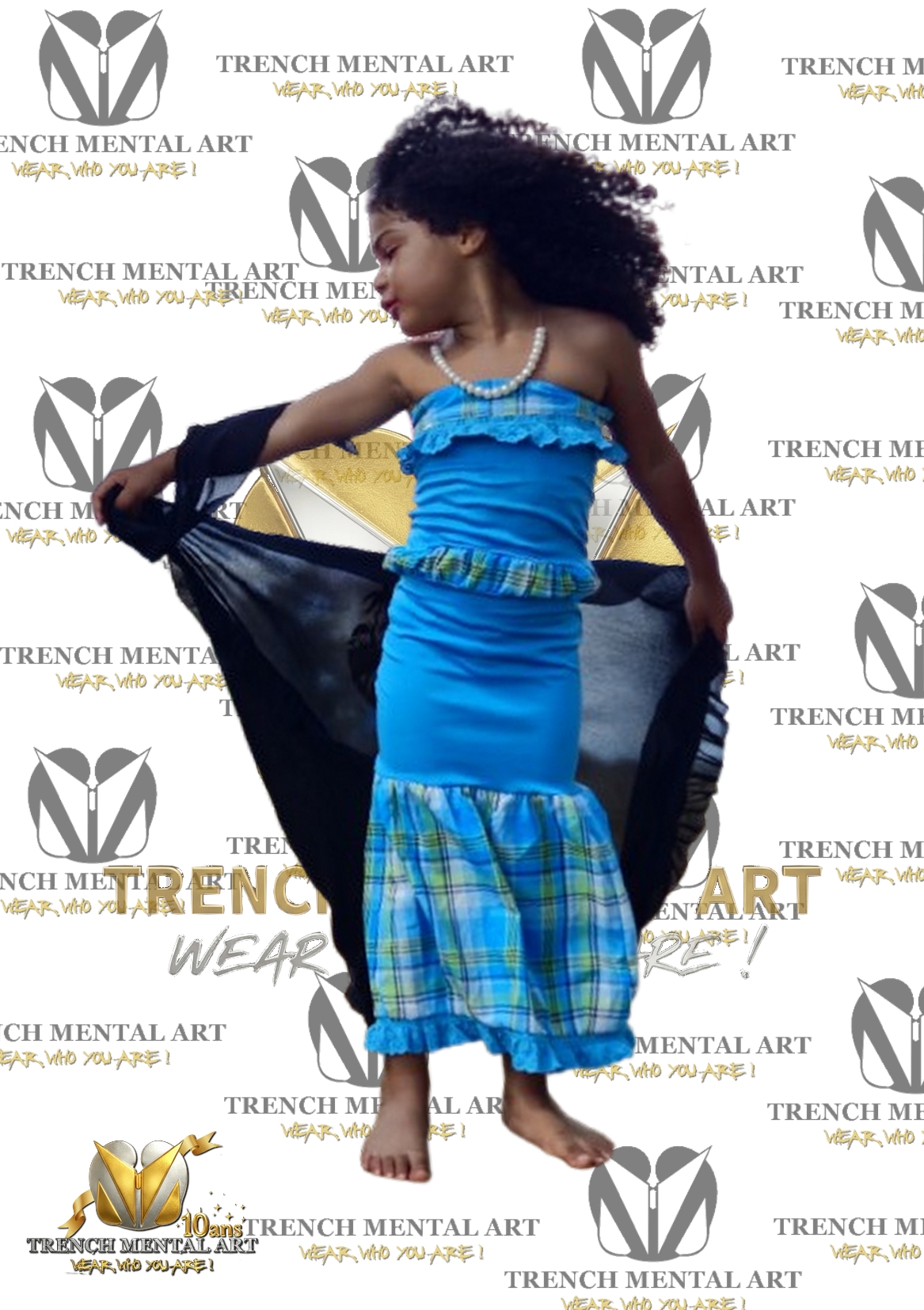 Ensemble en jersey/coton selon le coloris choisi (Noir/Blanc) avec Finitions en Madras selon le coloris choisi (rose, rouge, vert, bleu ou jaune)