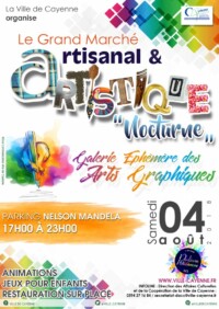 La Ville de Cayenne organise Le Grand Marché Artisanal & Artistique (Nocturne) Le Samedi 04 Août 2018 sur le parking Nelson MANDELA de 17h00 à 23h00 Ne ratez pas le Grand Marché Artisanal de la ville de Cayenne et venez nombreux à notre rencontre pour plus de surprises et encore plus de nouveautés … Venez découvrir en live La Kréyolity Koleksyon avec deux défilés (Premier passage 18h, Deuxième passage 21h) Nous vous attendons avec impatience … Cette manifestation est axée principalement sur la production artisanale locale, qui regroupera en un seul et même lieu le marché artisanal, la galerie éphémère des arts graphiques. Avec des ateliers Vannerie Démonstration sculpture bois/Vannerie, de l’animation au programme et restauration sur place.